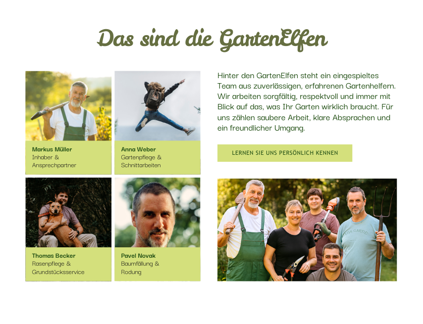Problem: Gartenarbeit wird körperlich zu anstrengend, Unsicherheit bei schweren oder gefährlichen Arbeiten, Wunsch nach Hilfe ohne komplizierte Absprachen.