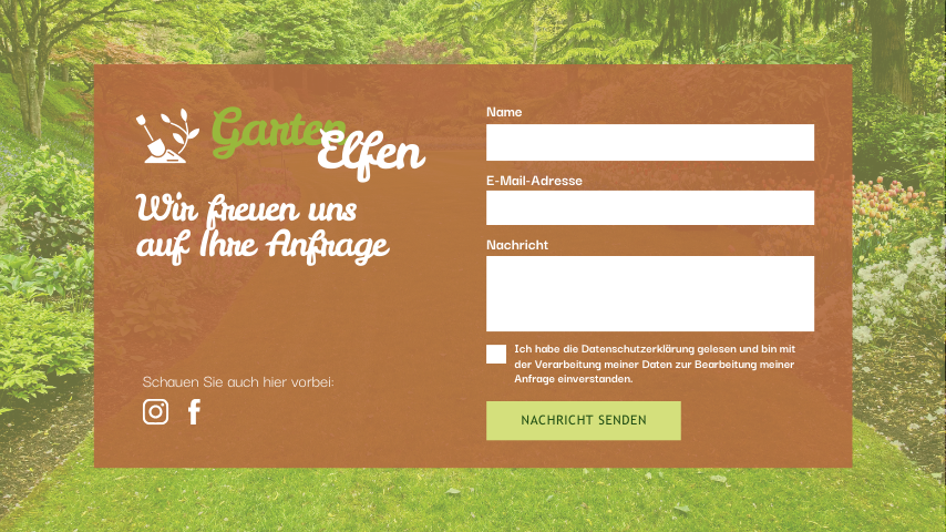 Im besten Fall hast du unter den meisten Abschnitten schon Buttons platziert, die zur Kontaktaufnahme leiten. Und hier werden Sie hingeleitet. Zu einem Kontaktformular.
