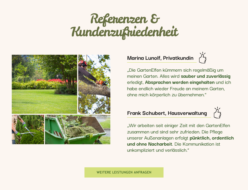 Hier wirklich auch kleine Details nennen. Das hilft nicht nur bei SEO (bei Google gefunden werden), sondern auch deinen Kunden. Gerade bei Gartenarbeiten ist vielen nicht klar, was alles dazugehört.